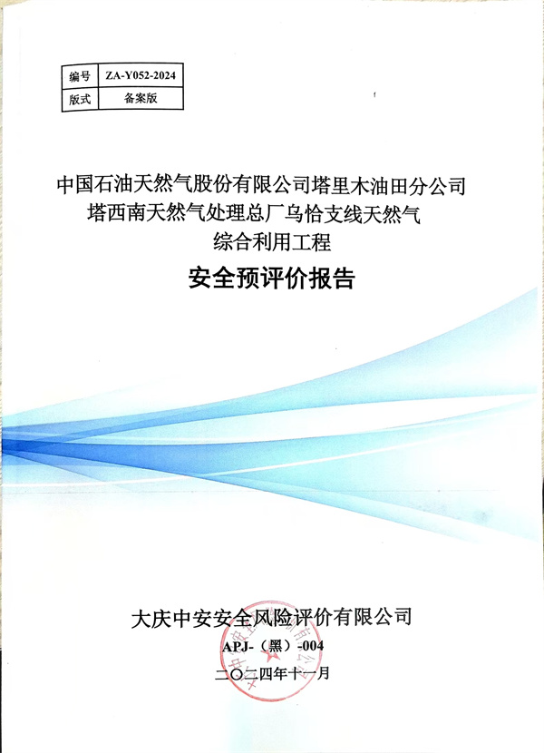 中國石油天然氣股份有限公司塔里木油田分公司塔西南天然氣處理總廠烏恰支線天然氣綜合利用工程安全預評價報告 |