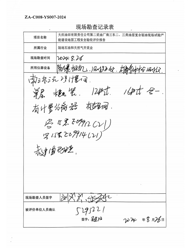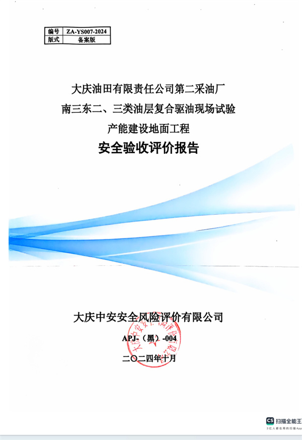 大慶油田有限責(zé)任公司第二采油廠南三東二、三類油層復(fù)合驅(qū)油現(xiàn)場試驗產(chǎn)能建設(shè)地面工程安全驗收評價 |