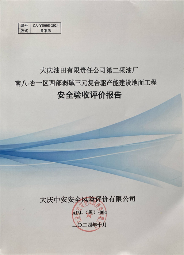 大慶油田有限責任公司第二采油廠南八-杏一區西部弱堿三元復合驅產能建設地面工程主要評價范圍包括: