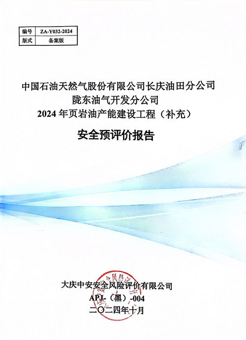 中國石油天然氣股份有限公司長慶油田分公司隴東油氣開發分公司2024年頁巖油產能建設工程(補充)安全預評價 |