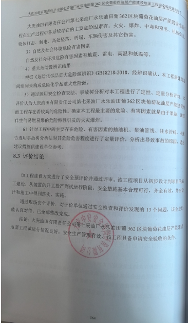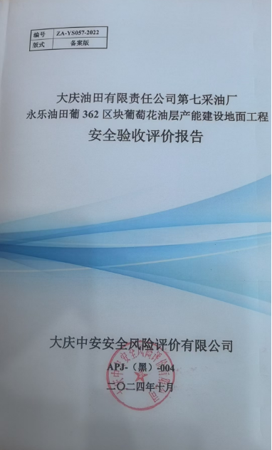 大慶油田有限責任公司第七采油廠永樂油田葡362區塊葡萄花油層產能建設地面工程安全驗收評價 |