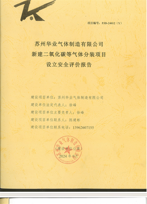 蘇州華業(yè)氣體制造有限公司新建二氧化碳等氣體分裝項(xiàng)目設(shè)立安全評(píng)價(jià)報(bào)告