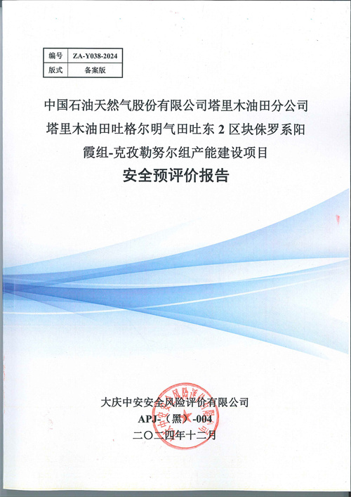 中國石油天然氣股份有限公司塔里木油田分公司 吐格爾明氣田吐東2區(qū)塊侏羅系陽霞組-克孜勒努爾組產(chǎn)能建設(shè)項目地面工程安全預(yù)評價報告
