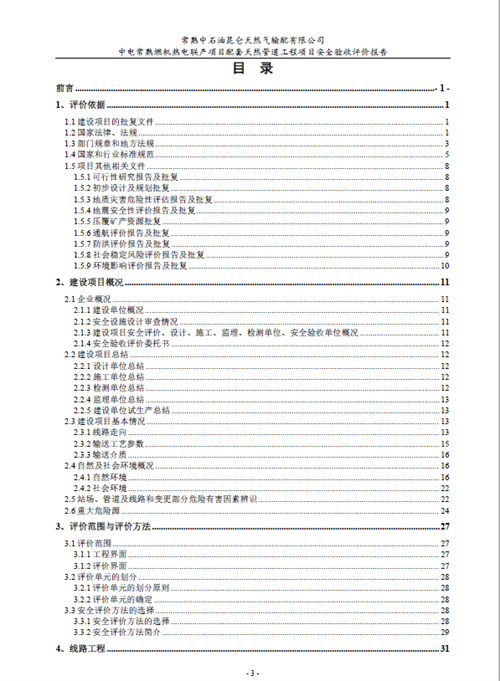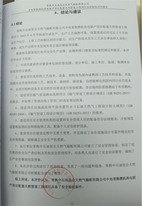 常熟中石油昆侖天然氣輸配有限公司中電常熟燃機熱電聯(lián)產項目配套天然管道工程項目安全設施竣工驗收評價報告 |