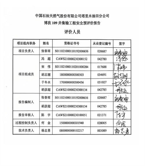 中國石油天然氣股份有限公司塔里木油田分公司博孜109井集輸工程安全預評價報告