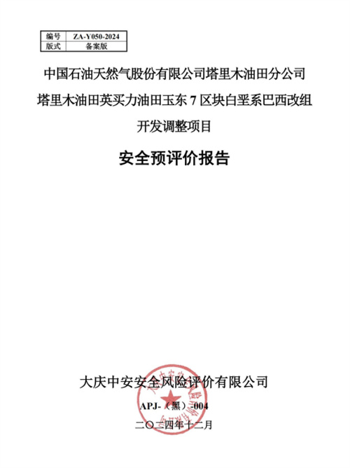 中國石油天然氣股份有限公司塔里木油田分公司塔里木油田英買力油田玉東7區塊白堊系巴西改組開發調整項目安全預評價報告