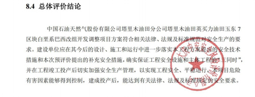 中國石油天然氣股份有限公司塔里木油田分公司塔里木油田英買力油田玉東7區塊白堊系巴西改組開發調整項目方案符合相關法律、法規及標準規范對安全生產的要求。建設單位應在其今后的設計、施工和運行中進一步落實本工程方案提出的安全技術措施和本次預評價提出的補充安全措施,確實保證工程安全設施和主體工程的“三同時”,并在工程竣工投產后切實加強安全生產管理,以實現工程安全、平穩運行,本項目危險有害因素能夠得到控制,建成投產后,能達到有關法律、法規及標準規定的安全要求。 |