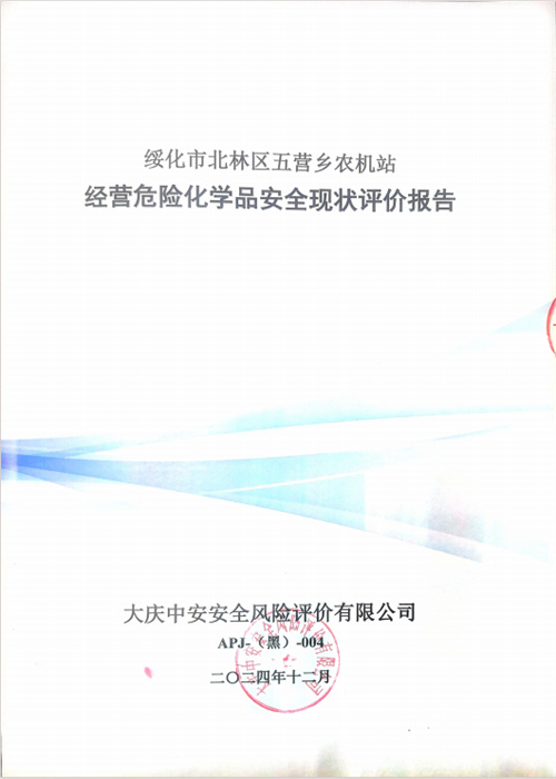 綏化市北林區五營鄉農機站經營危險化學品安全現狀評價 |
