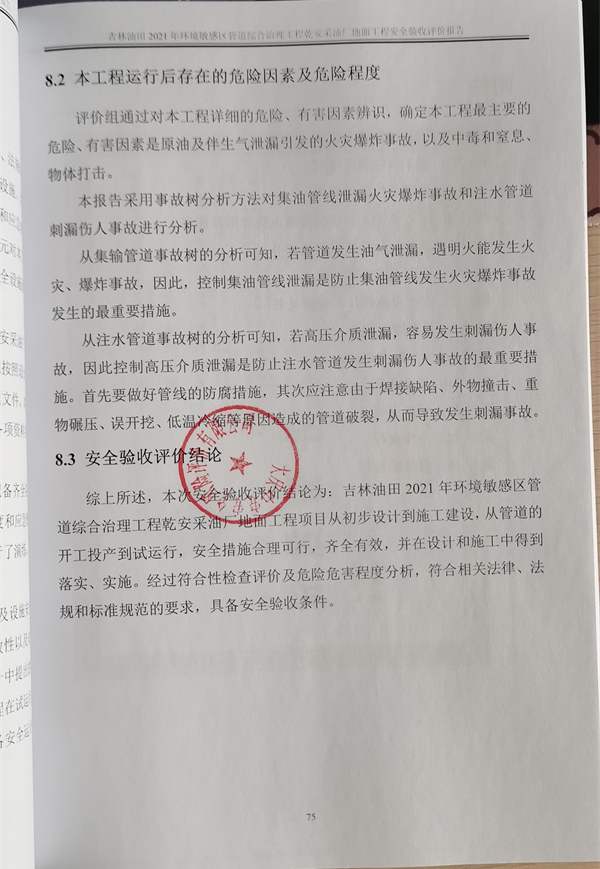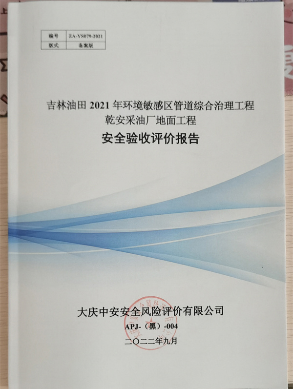 吉林油田2021年環境敏感區管道綜合治理工程乾安采油廠地面工程 安全驗收評價 |