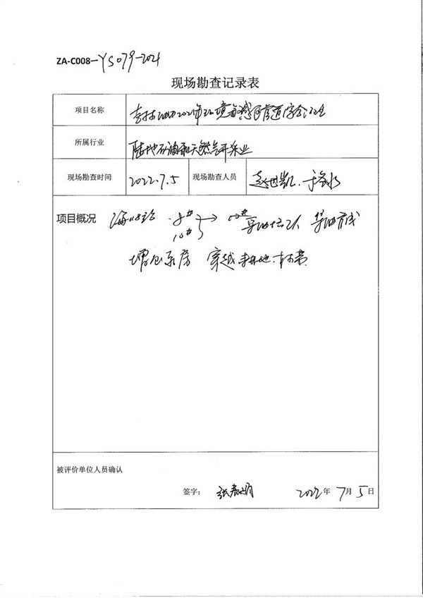 吉林油田2021年環境敏感區管道綜合治理工程乾安采油廠地面工程安全驗收評價