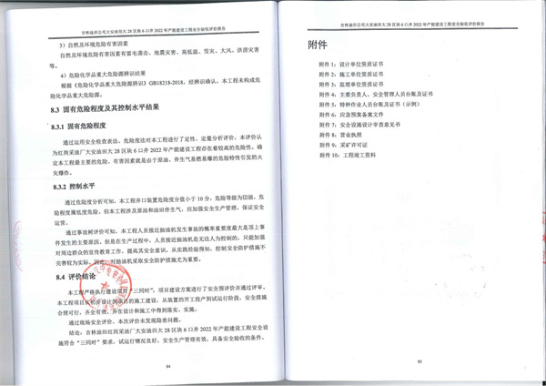 本工程嚴格執行建設項目“三同時”,項目建設方案進行了安全預評價并通過評審。本工程項目從初步設計到項目的施工建設,從裝置的開工投產到試運行階段,安全措施合理可行,齊全有效,并在設計和施工中得到落實、實施。 通過現場安全評價,本次評價未發現隱患問題。 結論:吉林油田紅崗采油廠大安油田大28區塊6口井2022年產能建設工程安全設施符合“三同時”要求,試運行情況良好,安全生產管理有效,具備安全驗收的條件。 |