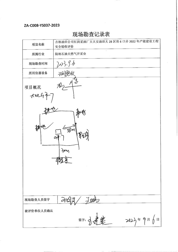 吉林油田公司紅崗采油廠大安油田大28區塊6口井2022年產能建設工程安全驗收評價