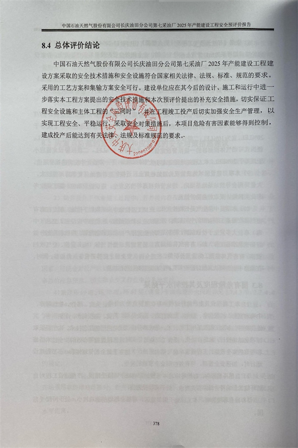 中國石油天然氣股份有限公司長慶油田分公司第七采油廠2025年產(chǎn)能建設(shè)工程安全預評價報告 |