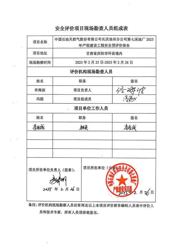 中國石油天然氣股份有限公司長慶油田分公司第七采油廠2025年產(chǎn)能建設(shè)工程安全預評價報告