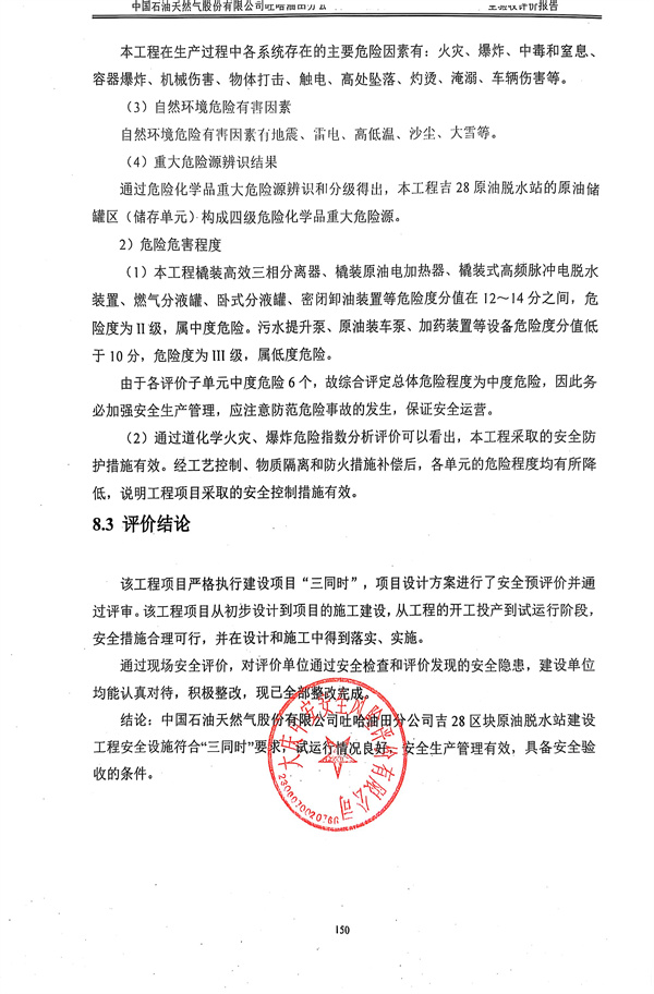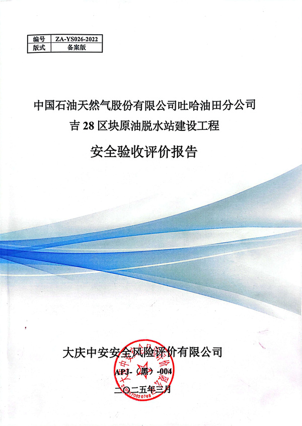 中國石油天然氣股份有限公司吐哈油田分公司吉28區塊原油脫水站建設工程安全驗收評價報告 |