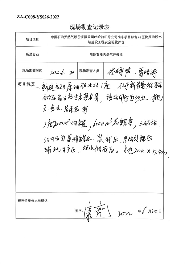 中國石油天然氣股份有限公司吐哈油田分公司吉28區塊原油脫水站建設工程安全驗收評價報告