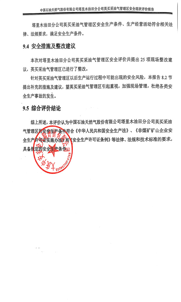 中國石油天然氣股份有限公司塔里木油田分公司英買采油氣管理區(qū)安全現(xiàn)狀評價報告