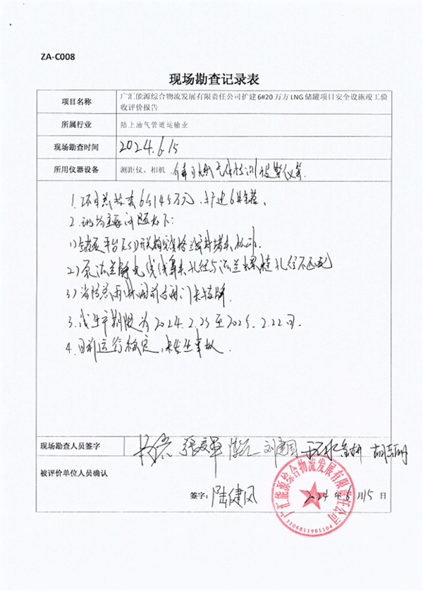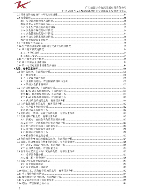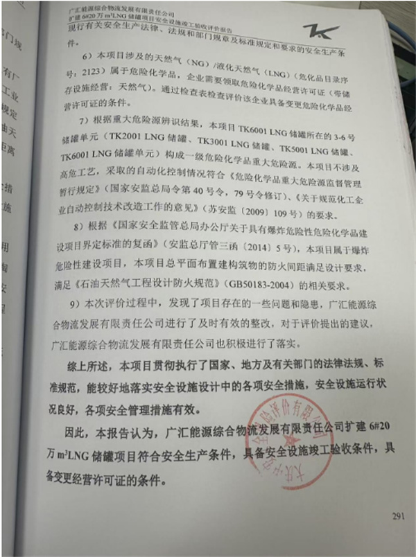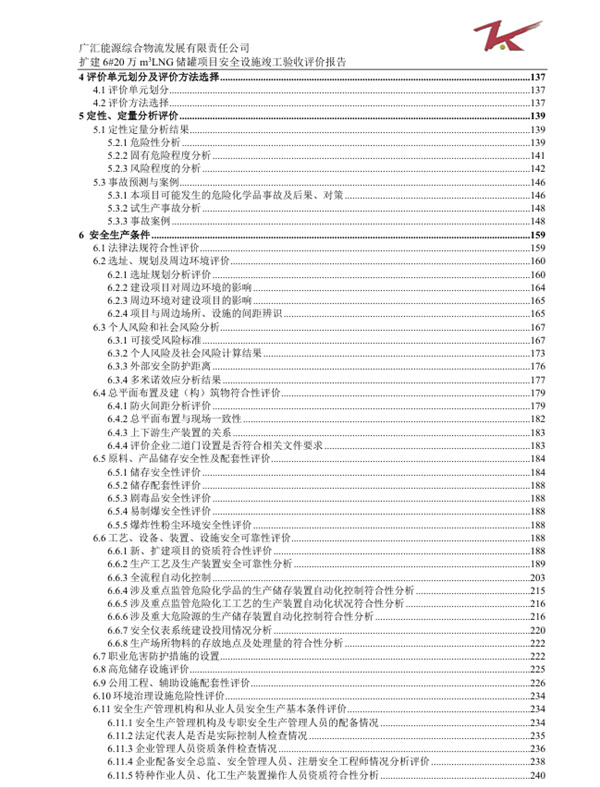 廣匯能源綜合物流發(fā)展有限責(zé)任公司擴(kuò)建6#20萬(wàn)m3LNG儲(chǔ)罐項(xiàng)目安全設(shè)施竣工驗(yàn)收評(píng)價(jià)報(bào)告