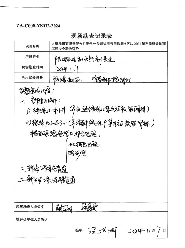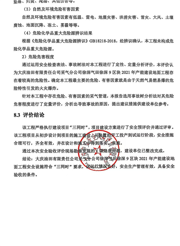 大慶油田有限責任公司采氣分公司徐深氣田徐深9區塊2021年產能建設地面工程安全驗收評價 |