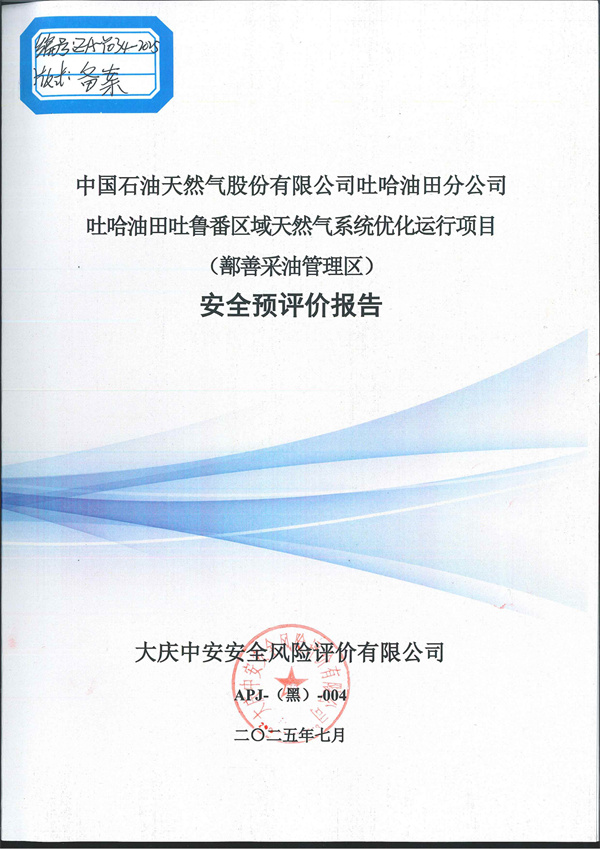 中國石油天然氣股份有限公司吐哈油田分公司吐哈油田吐魯番區(qū)域天然氣系統(tǒng)優(yōu)化運行項目(鄯善采油管理區(qū))安全預(yù)評價 |