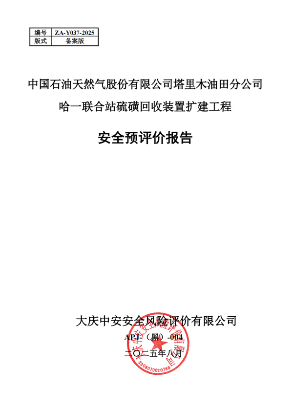 中國石油天然氣股份有限公司塔里木油田分公司哈一聯(lián)合站硫磺回收裝置擴(kuò)建工程安全預(yù)評(píng)價(jià)
