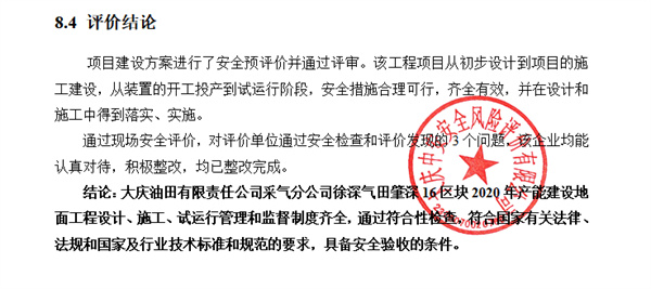 大慶油田有限責(zé)任公司采氣分公司徐深氣田肇深16區(qū)塊2020年產(chǎn)能建設(shè)地面工程設(shè)計(jì)、施工、試運(yùn)行管理和監(jiān)督制度齊全,通過(guò)符合性檢查,符合國(guó)家有關(guān)法律、法規(guī)和國(guó)家及行業(yè)技術(shù)標(biāo)準(zhǔn)和規(guī)范的要求,具備安全驗(yàn)收的條件。 |