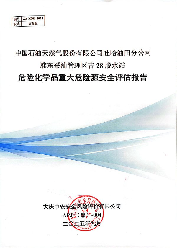 中國石油天然氣股份有限公司吐哈油田分公司準(zhǔn)東采油管理區(qū)吉28脫水站危險(xiǎn)化學(xué)品重大危險(xiǎn)源安全評(píng)估報(bào)告