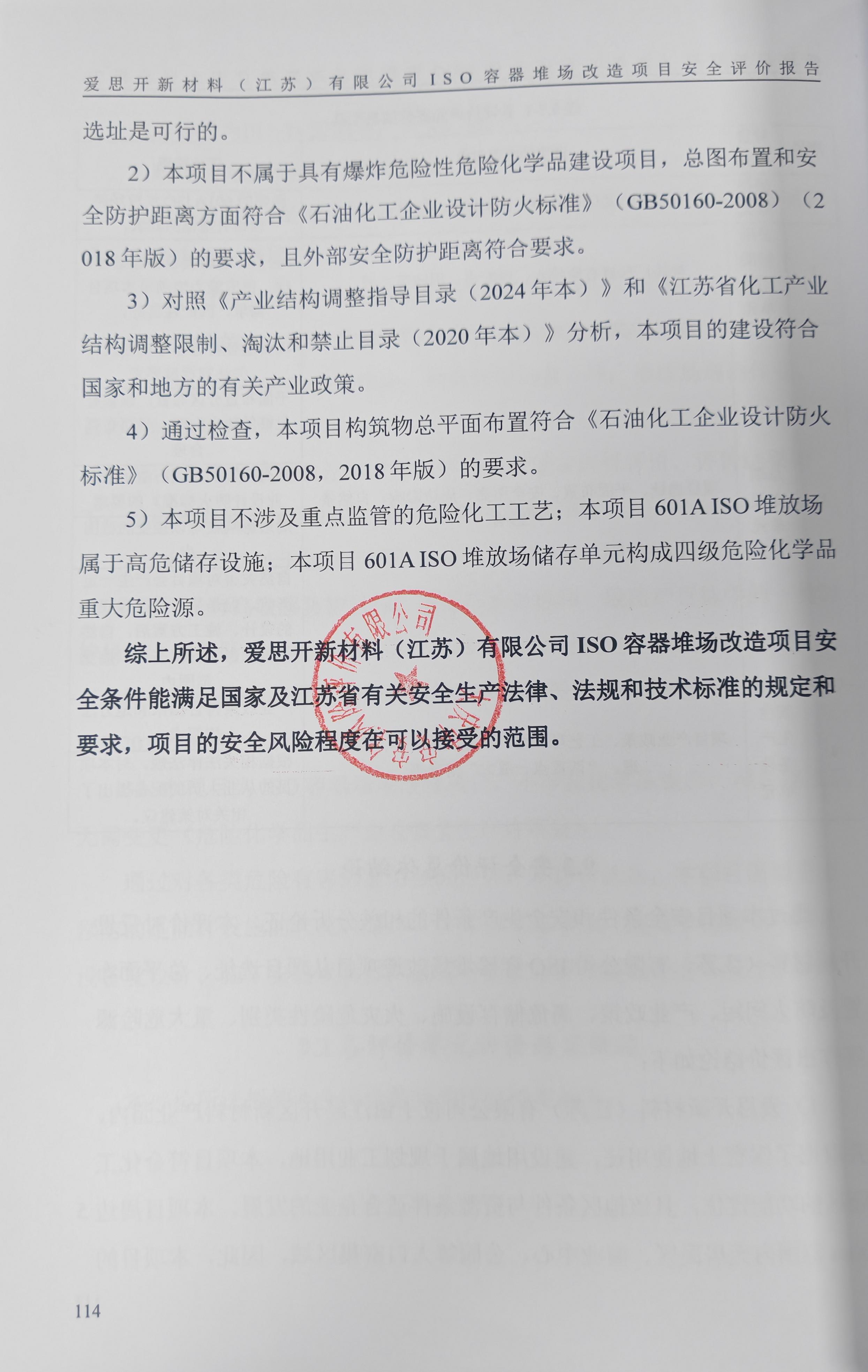 愛思開新材料(江蘇)有限公司ISO容器堆場改造項目安全評價報告 |