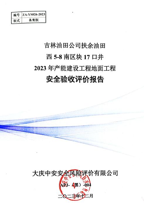 吉林油田公司扶余油田西5-8南區(qū)塊17口井2023年產(chǎn)能建設(shè)工程地面工程安全驗(yàn)收評(píng)價(jià)報(bào)告