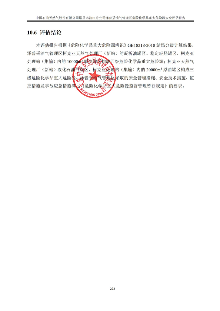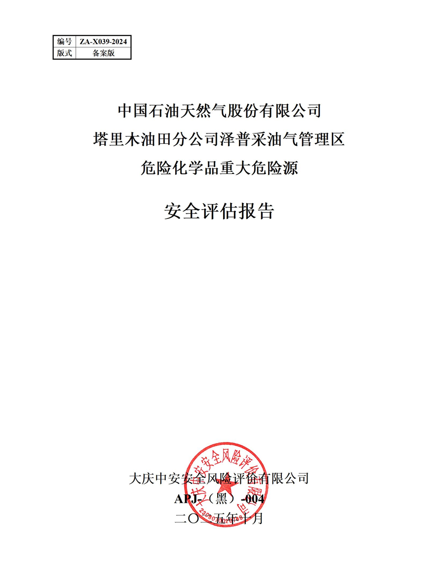 中國石油天然氣股份有限公司塔里木油田分公司澤普采油氣管理區(qū)危險(xiǎn)化學(xué)品重大危險(xiǎn)源安全評(píng)估報(bào)告