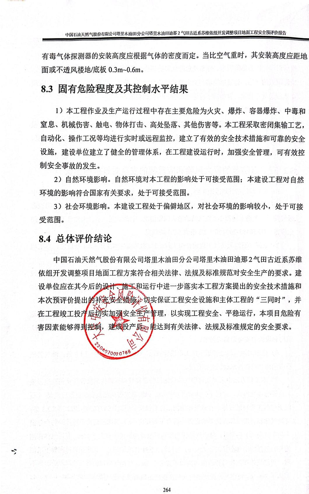 中國石油天然氣股份有限公司塔里木油田分公司塔里木油田迪那2氣田古近系蘇維依組開發(fā)調(diào)整項(xiàng)目地面工程安全預(yù)評價(jià)