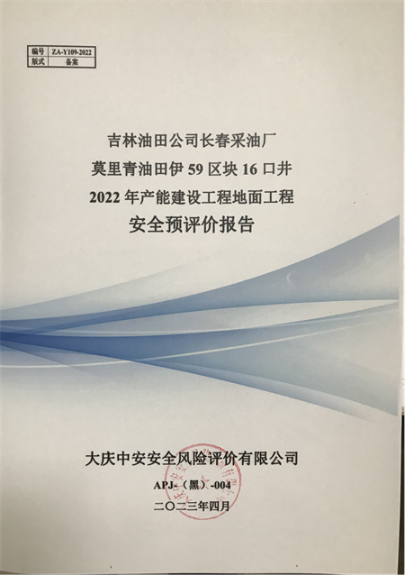 吉林油田公司長春采油廠莫里青油田伊59區(qū)塊16口井2022年產(chǎn)能建設(shè)工程安全預(yù)評價(jià) |