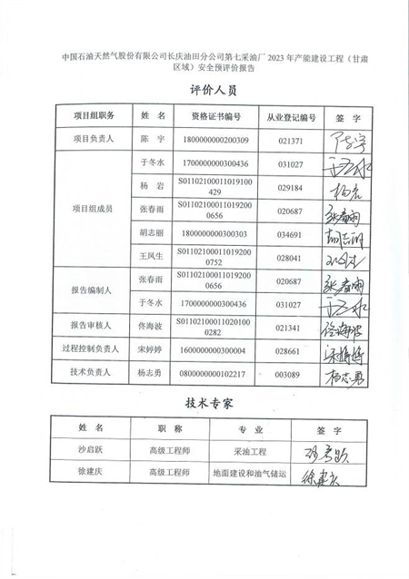 中國石油天然氣股份有限公司長慶油田分公司第七采油廠2023年產(chǎn)能建設(shè)工程(甘肅區(qū)域)安全預(yù)評價安全評價報告
