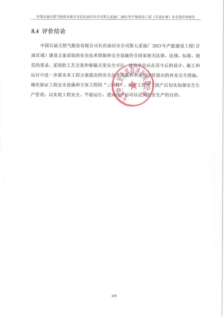中國石油天然氣股份有限公司長慶油田分公司第七采油廠2023年產(chǎn)能建設(shè)工程(甘肅區(qū)域)建設(shè)方案采取的安全技術(shù)措施和安全設(shè)施符合國家相關(guān)法律、法規(guī)、標(biāo)準(zhǔn)、規(guī)范的要求。采用的工藝方案和集輸方案安全可行。建設(shè)單位應(yīng)在其今后的設(shè)計、施工和運(yùn)行中進(jìn)一步落實本工程方案提出的安全技術(shù)措施和本次預(yù)評價提出的補(bǔ)充安全措施,確實保證工程安全設(shè)施和主體工程的“三同時”,并在工程竣工投產(chǎn)后切實加強(qiáng)安全生產(chǎn)管理,以實現(xiàn)工程安全、平穩(wěn)運(yùn)行,建成投產(chǎn)后可以達(dá)到安全生產(chǎn)的目的。 |