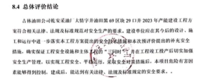 吉林油田公司乾安采油廠大情字井油田黑69區塊29口井2023年產能建設工程方案符合相關法律、法規及標準規范對安全生產的要求。建設單位應在其今后的設計、施工和運行中進一步落實本工程方案提出的安全技術措施和本次預評價提出的補充安全措施,確實保證工程安全設施和主體工程的“三同時”,并在工程竣工投產后切實加強安全生產管理,以實現工程安全、平穩運行,采取安全對策措施后,本項目危險有害因素能夠得到控制,建成后,能達到有關法律、法規及標準規定的安全要求。 |