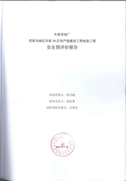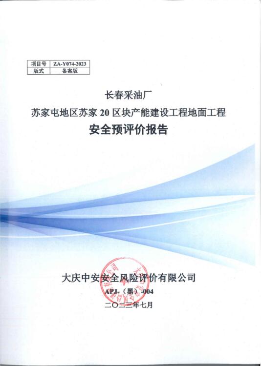 長春采油廠蘇家屯地區蘇家20區塊產能建設工程地面工程安全預評價報告