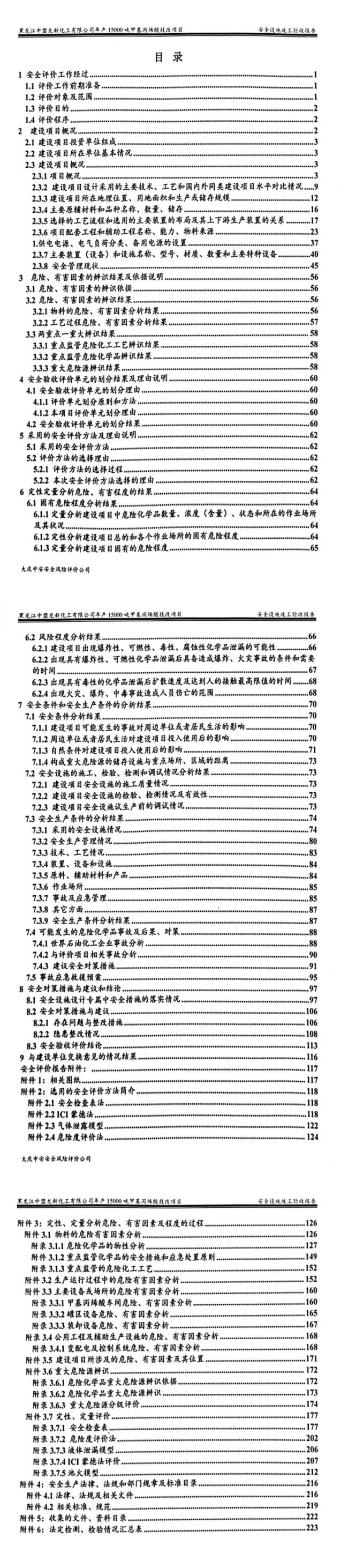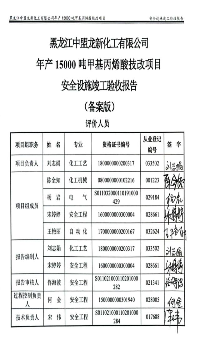 黑龍江中盟龍新化工有限公司年產(chǎn)15000噸甲基丙烯酸技改項(xiàng)目安全驗(yàn)收評(píng)價(jià)報(bào)告