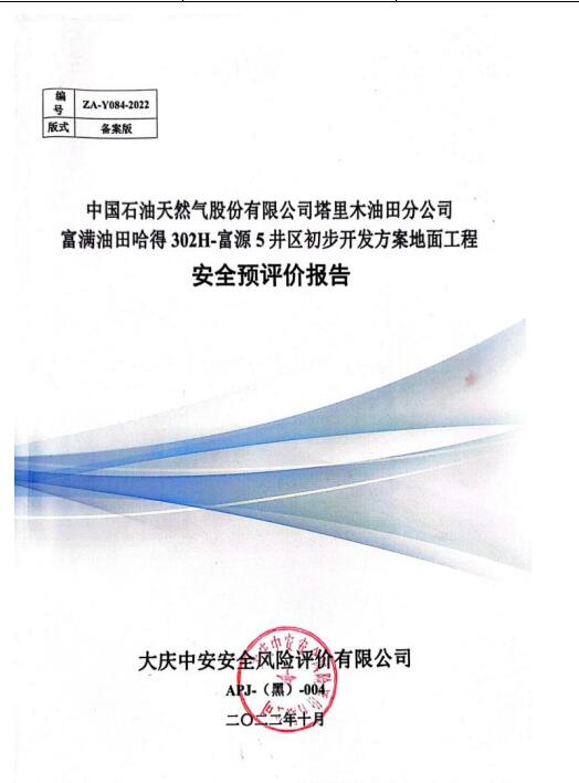 中國石油天然氣股份有限公司塔里木油田分公司富滿油田哈得302H-富源5井區初步開發方案地面工程安全評價報告