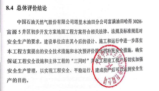 中國石油天然氣股份有限公司塔里木油田分公司富滿油田哈得302H-富源5井區初步開發方案地面工程方案符合相關法律、法規及標準規范對安全生產的要求。建設單位應在其今后的設計、施工和運行中進一步落實本工程方案提出的安全技術措施和本次預評價提出的補充安全措施,確實保證工程安全設施和主體工程的“三同時”并在工程竣工投產后切實加強安全生產管理,以實現工程安全、平穩運行,建成投產后可以達到安全生產的目的。 |