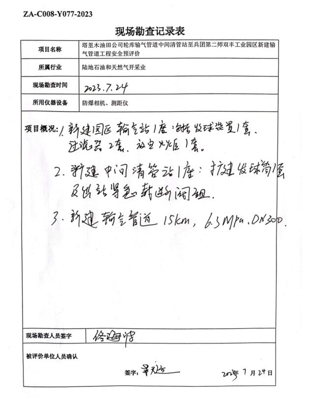 塔里木油田公司輪庫(kù)輸氣管道中間清管站至兵團(tuán)第二師雙豐工業(yè)園區(qū)新建輸氣管道工程安全預(yù)評(píng)價(jià)報(bào)告