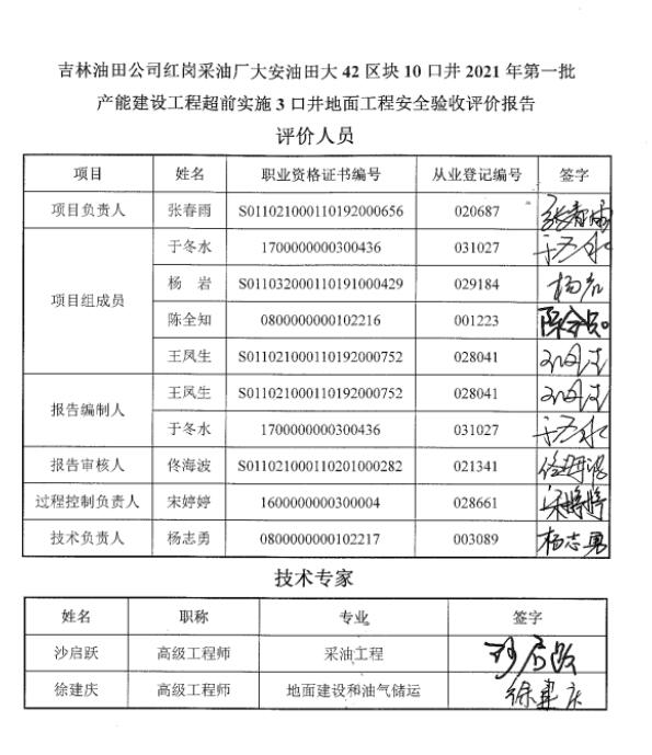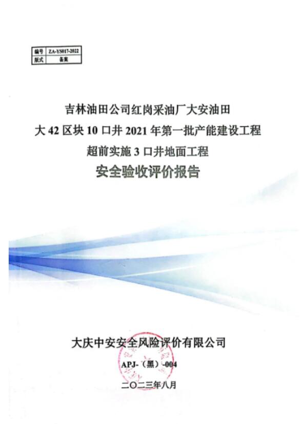 吉林油田公司紅崗采油廠大安油田大42區(qū)塊10口井2021年第一批產(chǎn)能建設(shè)工程超前實(shí)施3口井地面工程試運(yùn)行情況良好,安全生產(chǎn)管理有效,評(píng)價(jià)單位認(rèn)為,紅崗采油廠必須嚴(yán)格執(zhí)行《建設(shè)項(xiàng)目安全設(shè)施“三同時(shí)”監(jiān)督管理辦法》、《中華人民共和國(guó)安全生產(chǎn)法》等法律、法規(guī)和標(biāo)準(zhǔn)規(guī)范的要求,在對(duì)存在的安全隱患問題進(jìn)行徹底整改完成后,該產(chǎn)能建設(shè)工程具備申請(qǐng)安全驗(yàn)收的條件。 |