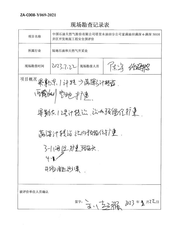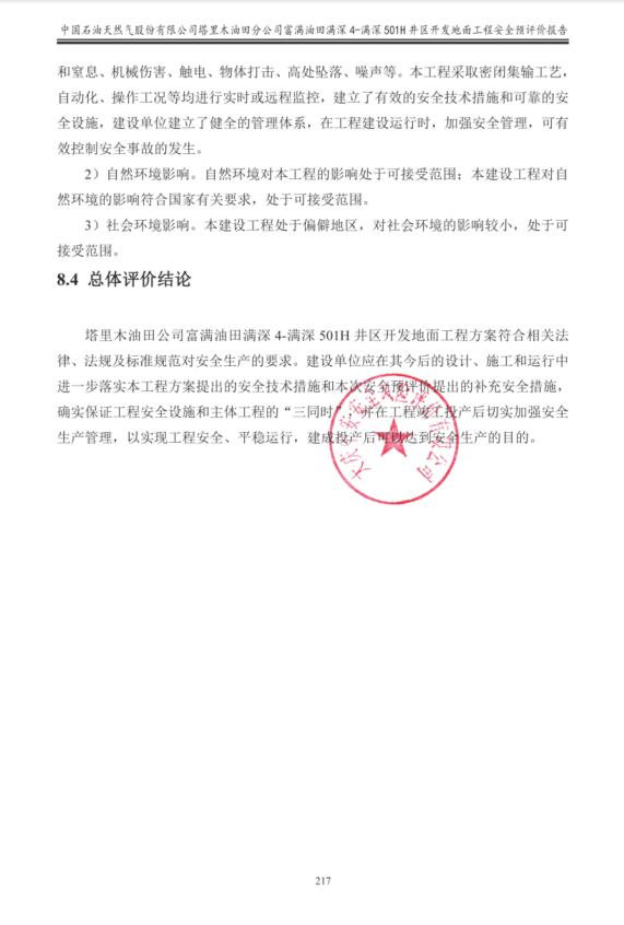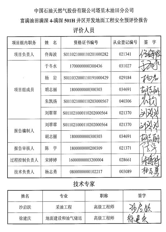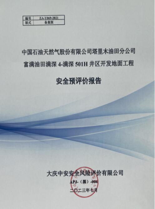 中國(guó)石油天然氣股份有限公司塔里木油田分公司富滿油田滿深4-滿深501H井區(qū)開(kāi)發(fā)地面工程安全預(yù)評(píng)價(jià)報(bào)告