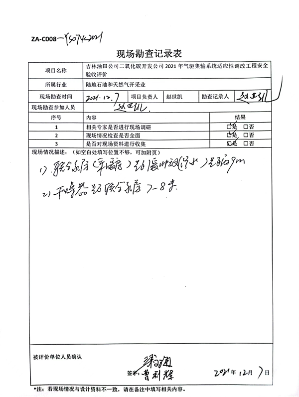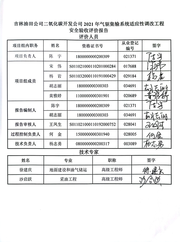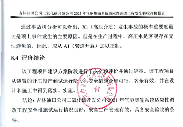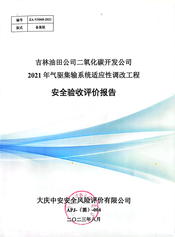 吉林油田公司二氧化碳開發公司2021年氣驅集輸系統適應性調改工程安全驗收評價