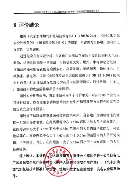 大慶油田有限責任公司儲運銷售分公司自備電廠加油站安全現狀評價報告 |
