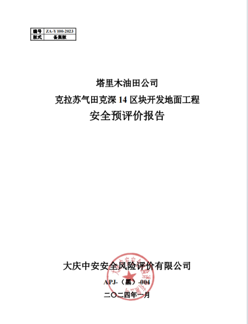 塔里木油田公司克拉蘇氣田克深14區塊開發地面工程安全預評價報告