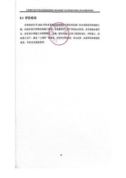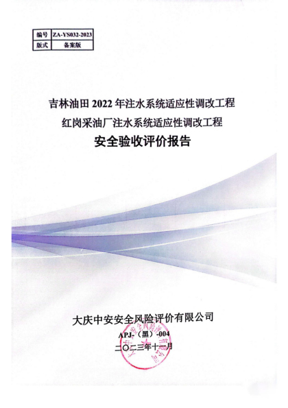 吉林油田2022年注水系統適應性調改工程紅崗采油廠注水系統適應性調改工程安全驗收評價報告 |