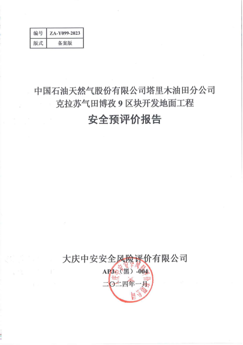 中國(guó)石油天然氣股份有限公司塔里木油田分公司克拉蘇氣田博孜9區(qū)塊開(kāi)發(fā)地面工程 安全預(yù)評(píng)價(jià)