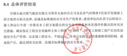 中國(guó)石油天然氣股份有限公司塔里木油田分公司克拉蘇氣田博孜9區(qū)塊開(kāi)發(fā)地面工程方案符合相關(guān)法律、法規(guī)及標(biāo)準(zhǔn)規(guī)范對(duì)安全生產(chǎn)的要求。建設(shè)單位應(yīng)在其今后的設(shè)計(jì)、施工和運(yùn)行中進(jìn)一步落實(shí)本工程方案提出的安全技術(shù)措施和本次預(yù)評(píng)價(jià)提出的補(bǔ)充安全措施,確實(shí)保證工程安全設(shè)施和主體工程的“三同時(shí)”,并在工程竣工投產(chǎn)后切實(shí)加強(qiáng)安全生產(chǎn)管理,以實(shí)現(xiàn)工程安全、平穩(wěn)運(yùn)行,本項(xiàng)目危險(xiǎn)有害因素能夠得到控制,建成投產(chǎn)后,能達(dá)到有關(guān)法律、法規(guī)及標(biāo)準(zhǔn)規(guī)定的安全要求。 |
