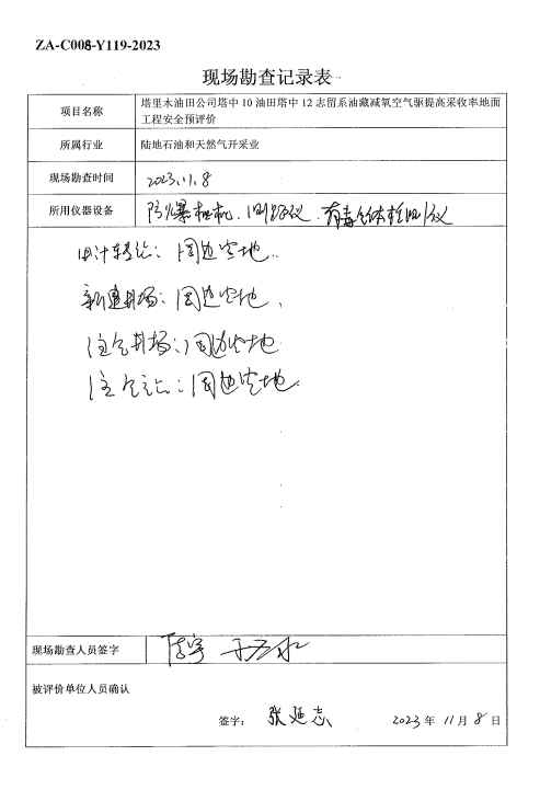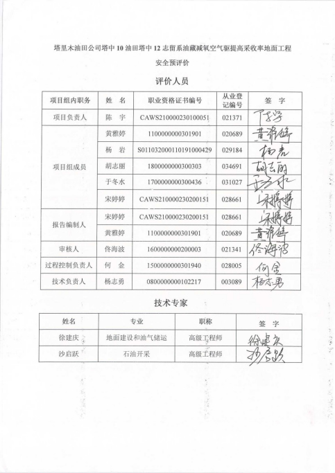 塔里木油田公司塔中10油田塔中12志留系油藏減氧空氣驅提高采收率地面工程 安全預評價