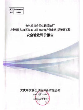 吉林油田公司紅崗采油廠大安油田大39區塊45口井2022年產能建設工程地面工程 安全驗收評價報告